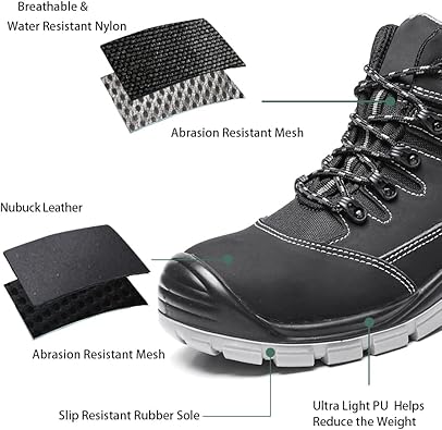 - ALL OCCASIONS: Our steel-toe work boots are durable enough to support and stabilize your foot and alleviate pressure. Our design of work boots makes them a perfect choice for any occasion, suitable for electricians, maintenance workers, warehouse staff, or construction workers.