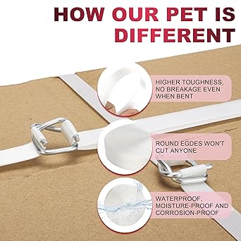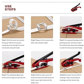 - 【High Quality】Made of high quality polypropylene composite material, the banding strapping kit is durable and sturdy enough for long life time. You can create much tension in the bander, perfect for storage of pallets and heavy bundles. The packaging strapping kit would be strong enough or tight enough for shipping, it won’t break .Maximum tightening force: 2500lbs/1100kg