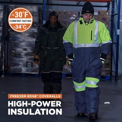 - HIGH-VISIBILITY COVERALLS: Keep out frigid winter weather with these wind-tight, water-resistant, and 100% polyester insulated coveralls for men. The neon color and reflective silver tape across the chest, shoulders, waist, and legs provide visibility.